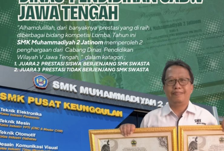 Jatinom, 18 November 2025 — Prestasi membanggakan kembali ditorehkan oleh SMK Muhammadiyah 2 Jatinom. Pada tahun 2025 ini, sekolah berhasil memperoleh dua penghargaan sekaligus dari Dinas Pendidikan Cabang Wilayah V Jawa Tengah atas capaian prestasi para siswanya di berbagai bidang kompetisi.Dari sederet prestasi yang telah diraih sepanjang tahun, Cabang Dinas Pendidikan Wilayah V Jawa Tengah memberikan apresiasi kepada SMK Muhammadiyah ...