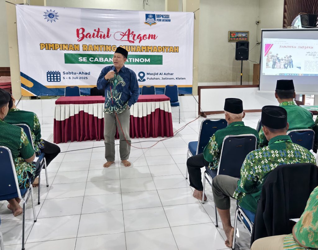 Jatinom, 5-6 Juli 2025 – Majelis Pembinaan Kader dan Sumber Daya Insani (MPKSDI) Pimpinan Cabang Muhammadiyah (PCM) Jatinom sukses menyelenggarakan kegiatan Baitul Arqom yang diikuti oleh perwakilan Pimpinan Ranting Muhammadiyah (PRM) se-Jatinom. Kegiatan ini dilaksanakan selama dua hari, Sabtu hingga Ahad (5-6 Juli 2025) bertempat di Masjid Al Azhar, Puluhan, Jatinom, Klaten sebagai Masjid Bidikan Masjid percontohan di Jatinom.