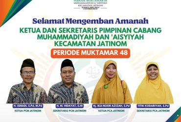 Selamat Mengemban Amanah Ketua dan Sekretaris Pimpinan Cabang Muhammadiyah dan ‘Aisyiyah Kecamatan Jatinom Periode Muktamar 48