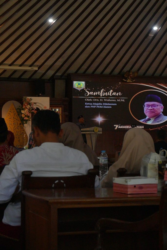 Untuk kedua kalinya dalam akhirussanah ini, SMPIT Muhammadiyah An Najah Jatinom dihadiri Dr. H. Wahono, M.Pd., selaku Ketua Majlis Dikdasmen dan PNF PDM Klaten. Dalam sambutannya, beliau menyampaikan, “SMPIT Muhammadiyah An Najah Jatinom ini luar biasa outputnya. Saya duduk dari awal acara sampai menjelang akhir ini menyimak dan ikut mengalir dalam setiap acara.” Selain itu, beliau juga menambahkan, “Tema besar ini menjadi sesuatu yang khas dari An Najah karena saya belum menemukan di acara sejenis di tempat lain.”